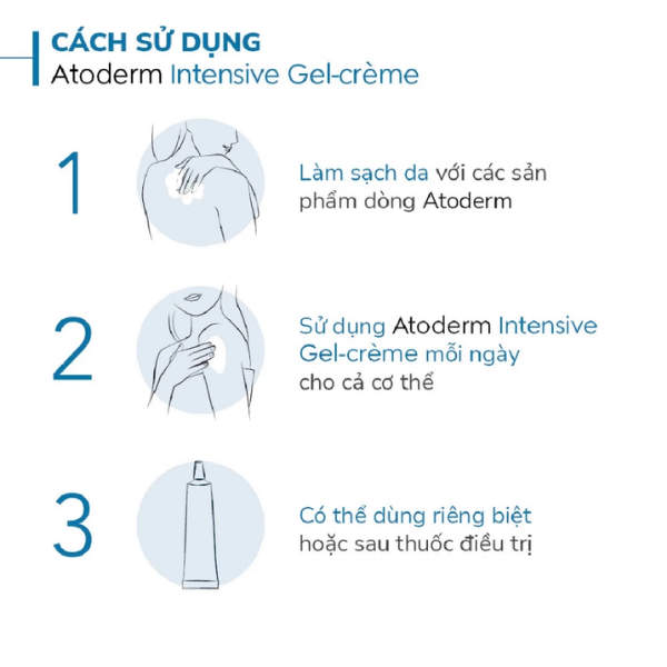 - Bước 2: Thoa Atoderm Intensive Gel-crème lên vùng da cần chăm sóc (mặt và/hoặc toàn thân).