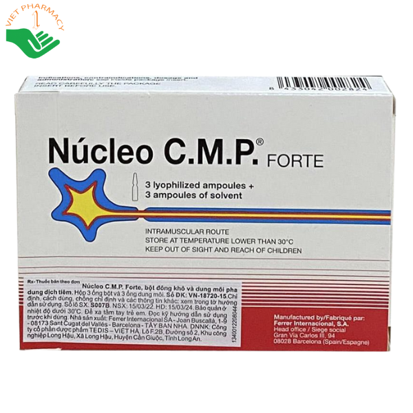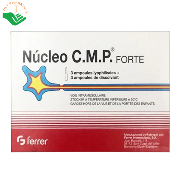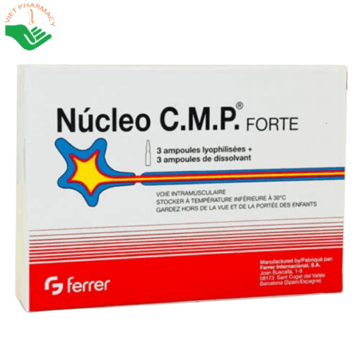 Nucleo C.M.P Forte chứa 2 nucleotide: Cytidine-5′-monophosphate (CMP): Cần thiết cho tổng hợp phức chất lipid và lipoprotein là thành phần cấu tạo hệ thống thần kinh, Uridine-5′-triphosphate (UTP): Là nguồn cung cấp năng lượng và có tác động dinh dưỡng mô thần kinh và sự có bổ sung cho tác động của C.M.P.