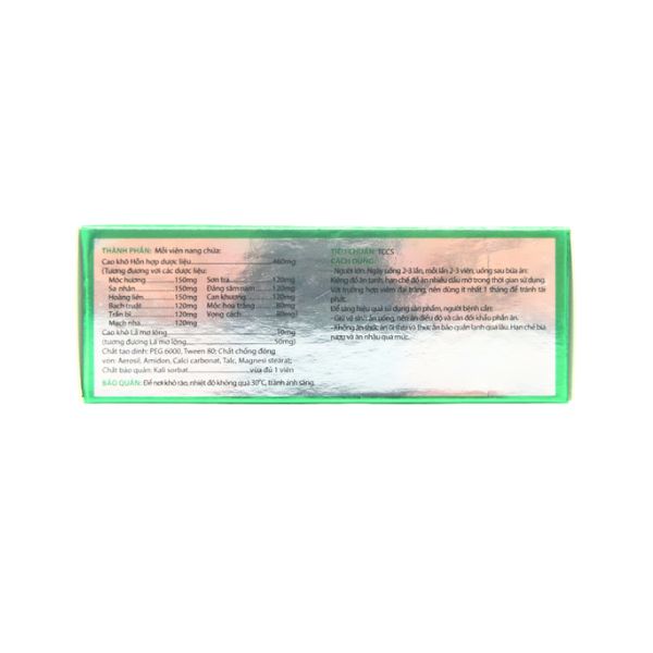 Với sự kết hợp của các thảo dược tự nhiên như bạch truật, mộc hương, hoàng liên cùng nhiều dược liệu quý khác, viên uống giúp làm dịu niêm mạc ruột, hỗ trợ cải thiện viêm đại tràng, giảm đầy bụng, khó tiêu và rối loạn tiêu hóa, mang lại cảm giác nhẹ bụng và dễ chịu hơn mỗi ngày.