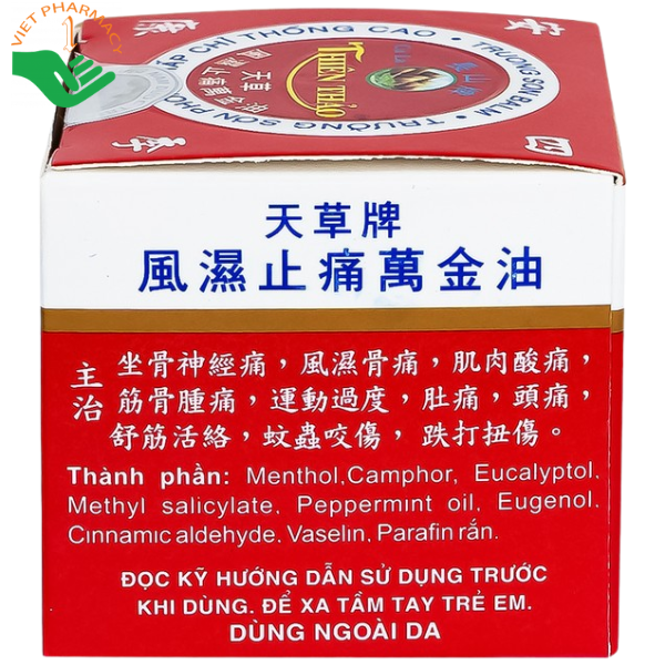 Hỗ trợ trong các trường hợp đau thần kinh tọa, phong thấp, đau khớp, tê thấp tay chân, nhức mỏi cơ bắp, đau nhức do lao động hoặc chơi thể thao quá độ, xoa bóp khí huyết lưu thông, đau lưng, đau bụng, nhức đầu, cảm cúm, trúng gió, bị côn trùng cắn.