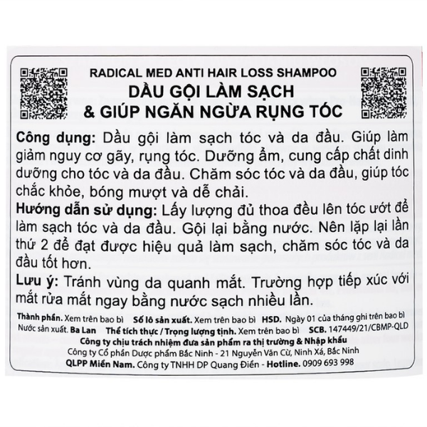 Mô tả dầu gội Radical Med Anti Hair Loss Shampoo hỗ trợ ngăn rụng, kích thích mọc tóc