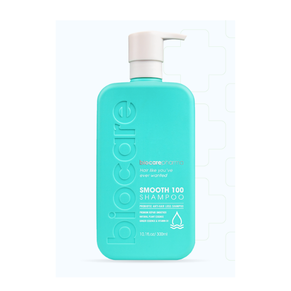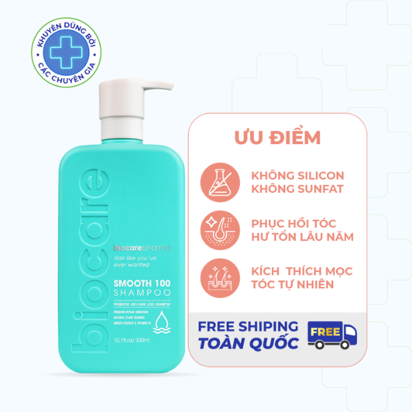 Dầu gội Smooth 100 Shampoo là sản phẩm dưỡng tóc siêu phục hồi khô xơ và ngăn ngừa rụng tóc từ Biocare Pharma, giúp nuôi dưỡng mái tóc từ gốc đến ngọn.