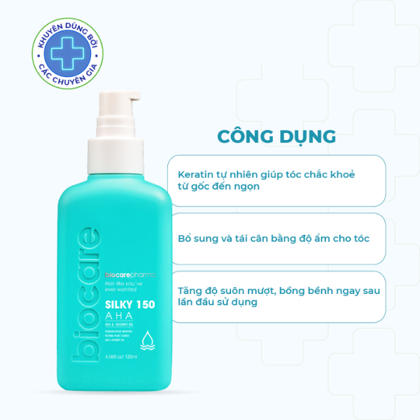 Dầu xả khô tinh chất dưỡng tóc AHA Keratin Silky 150 Biocare Pharma bổ sung dưỡng chất cho tóc (Chai 120ml)