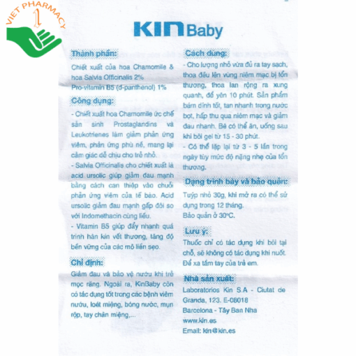 Kin Baby dùng cho bé đang tuổi mọc răng và người lớn hay có triệu chứng viêm loét miệng.