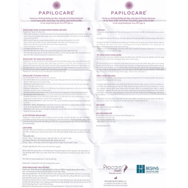Mô tả sản phẩm Gel phụ khoa Papilocare Procare Health phòng ngừa và hỗ trợ điều trị tổn thương do HPV