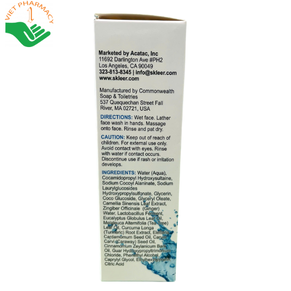 Mô tả Gel rửa mặt cân bằng hệ vi sinh Skleer Prebiotic Face Wash dành cho mọi loại da
