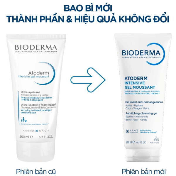 Atoderm Intensive Gel Moussant là sản phẩm tắm gội thuộc dòng ATODERM của BIODERMA, được bào chế theo phương pháp sinh học hệ da. Sản phẩm sử dụng các hoạt chất làm sạch siêu mịn, không chứa xà phòng và dễ dàng tạo bọt, giúp làm sạch da mà không làm mất đi lớp dầu tự nhiên cần thiết. Sáng chế Skin Barrier Therapy™ trong công thức giúp hạn chế sự bám dính của vi khuẩn gây kích ứng trên bề mặt da, trong khi Sáng chế D.A.F. tăng cường ngưỡng dung nạp và sức đề kháng của da.
