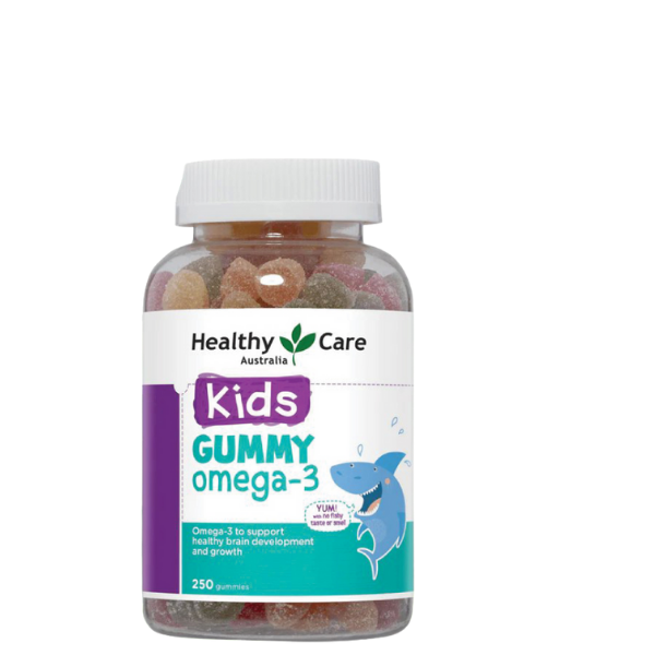 Kẹo dẻo bổ sung Gummy Omega-3 Healthy Care Úc hay còn được gọi với cái tên Healthy Care Gummy Omega 3 250 Gummies được nghiên cứu và sản xuất bởi các chuyên gia chăm sóc sức khỏe trẻ em từ hãng Healthy Care hàng đầu tại Úc từ dầu cá tự nhiên chứa omega 3 cung cấp một lượng lớn DHA (>32mg/1 viên) một loại axit béo không no thuộc nhóm omega-3 đóng vai trò quan trọng trong sự phát triển thị giác và trí tuệ ở trẻ. Sản phẩm phù hợp cho các bé từ 2 tuổi.