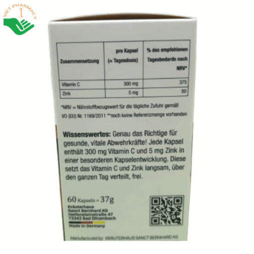 Mô tả hỗ trợ tăng cường sinh lực nam giới Vitamin C+ Zink