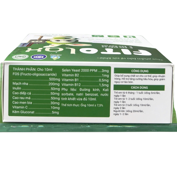 Hỗ trợ tiêu hóa, bổ sung chất xơ Dr Pharma Fitolax cung cấp chất xơ và các chất dinh dưỡng thiết yếu giúp hỗ trợ hệ tiêu hóa khỏe mạnh. Với công thức chứa FOS, Inulin, mạch nha, cao chiên cá, rau má và men bia, sản phẩm giúp bổ sung chất xơ, hỗ trợ nhuận tràng, giảm nguy cơ táo bón, đầy bụng, khó tiêu. Bên cạnh đó, vitamin C, B1, B2, B12 cùng kẽm và selen góp phần tăng sức mạnh kháng kháng cho cơ thể. Sản phẩm phù hợp cho trẻ nhỏ, người lớn có chế độ ăn ít xơ cứng hoặc gặp vấn đề tiêu hóa.