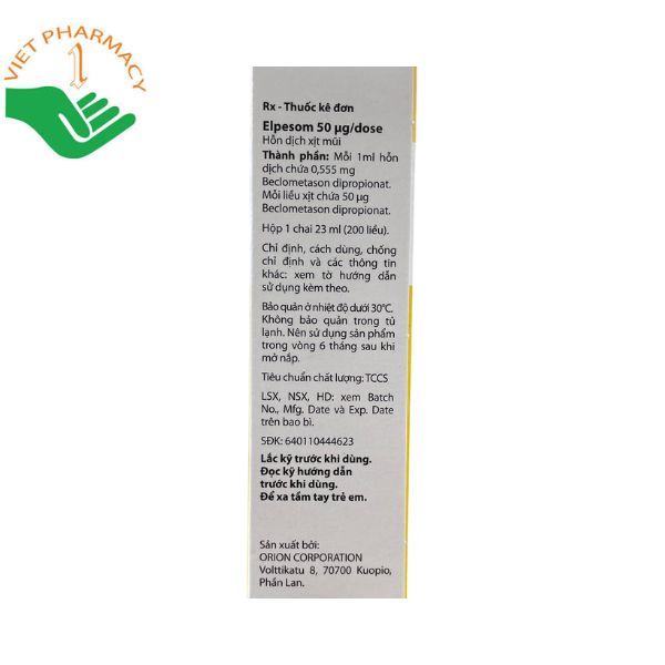 Không biết Elpesom 50 μg có gây khô mũi hay khó chịu khi xịt thường xuyên không ạ?