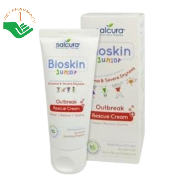 Bioskin Junior Outbreak Rescue Cream là sản phẩm bôi da dành cho trẻ em và trẻ sơ sinh trên 3 tháng tuổi, được đánh giá cao trong hỗ trợ điều trị chàm, eczema, ngứa phát ban, khô da và mẩn đỏ. Sản phẩm có nguồn gốc hoàn toàn tự nhiên, không chứa steroid hay chất cấm, an toàn để dùng cả trên da mặt của bé. Kem chứa tinh chất cây lanh giúp giảm viêm, sưng tấy nhanh; tinh chất cây lưu ly hỗ trợ cân bằng độ ẩm cho da; khoáng chất Zeolite giúp loại bỏ các gốc tự do gây hại. Với công thức dịu nhẹ Bioskin Junior Cream đặc biệt phù hợp với làn da nhạy cảm của trẻ.