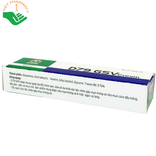 Kem bôi D79 GSV Cream được thiết kế đặc biệt để thẩm thấu sâu, giảm viêm và loại bỏ mụn cứng đầu, giúp cải thiện tình trạng mụn lâu năm hiệu quả.