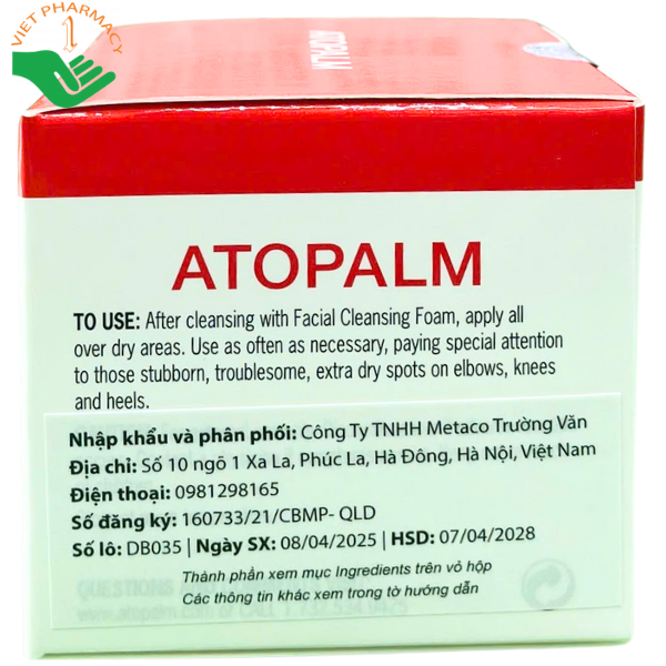 - Đặc biệt, Atopalm giúp khôi phục những lipid tự nhiên của hàng rào da bị phá hủy sau những điều trị mạnh trên da. Atopalm dùng được cho cả người lớn và trẻ nhỏ.