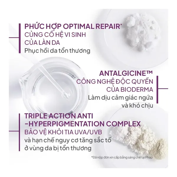 Cicabio Crème SPF50+ là sản phẩm 2-trong-1 độc đáo từ Bioderma, giải quyết đồng thời hai nhu cầu thường thấy sau khi điều trị da: phục hồi và bảo vệ nắng. Sau khi thực hiện các thủ thuật như laser, lột da hóa học, xăm hoặc các liệu pháp điều trị da khác, lớp biểu bì thường bị tổn thương và trở nên cực kỳ nhạy cảm với tia UV. Việc dùng kem chống nắng thông thường có thể gây kích ứng thêm. Cicabio Crème SPF50+ kết hợp các hoạt chất phục hồi như Centella asiatica, Sodium Hyaluronate và công nghệ Antalgicine™ với hệ thống lọc UV hiện đại, đảm bảo da được phục hồi và bảo vệ đồng thời. Kết cấu nhẹ, không gây bít tắc, dung nạp tốt trên da đang điều trị.