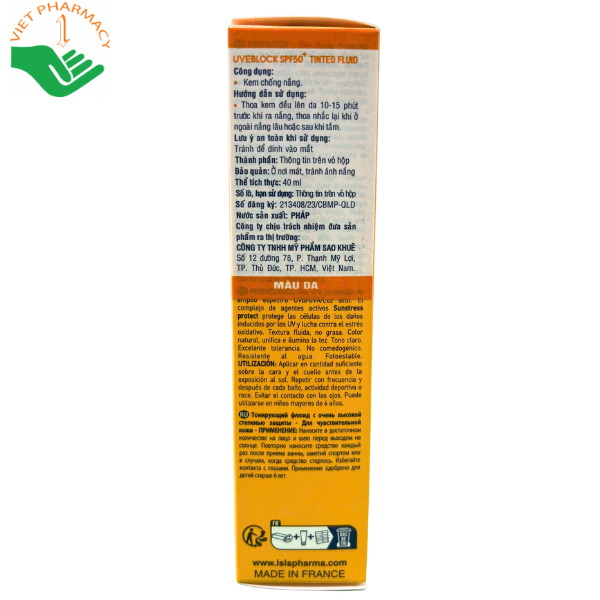 Mô tả kem chống nắng Isis Pharma Uveblock 50 Tinted Cream SPF 50+
