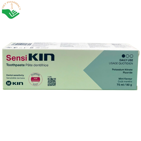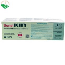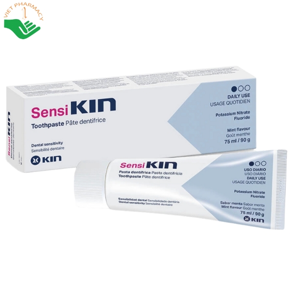 Sản phẩm SensiKin Toothpaste là kem đánh răng chứa Hydrated Silica giúp làm sạch mảng bám, kết hợp Potassium Nitrate hỗ trợ chăm sóc răng nhạy cảm. Nhờ hàm lượng Sodium Fluoride trong giới hạn cho phép, sản phẩm giúp tăng cường khả năng ngừa sâu răng và bảo vệ men răng. Mùi hương dịu nhẹ giúp mang lại cảm giác thơm mát và tự tin khi giao tiếp. Phù hợp cho người lớn và trẻ em trên 12 tuổi, sử dụng đều đặn sau mỗi bữa ăn và trước khi ngủ.