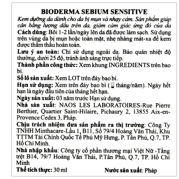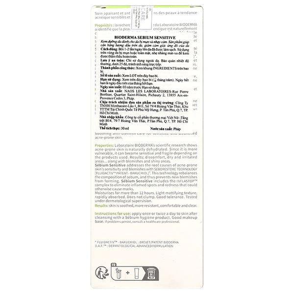 - Sản xuất/Chủ sở hữu: Laboratoires NAOS – BIODERMA, Pháp