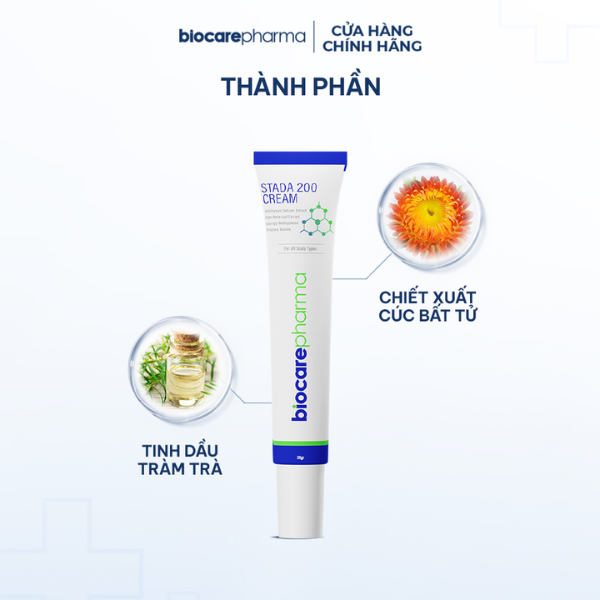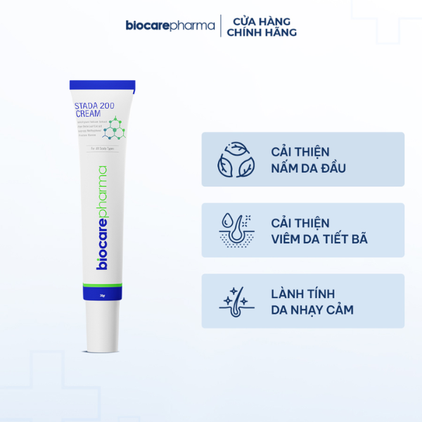 Kem nấm Stada 200 Cream Biocare Pharma là sản phẩm kem hỗ trợ điều trị nấm và gàu da đầu hiệu quả, được bào chế từ thảo dược tự nhiên và hoạt chất chuyên biệt giúp loại bỏ nguyên nhân nấm ngứa.