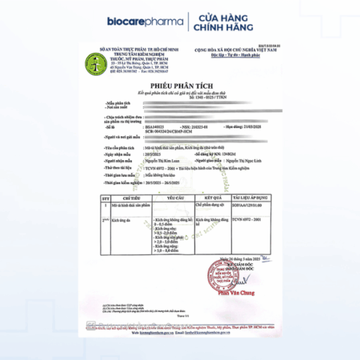 - Thương nhân chịu trách nhiệm về sản phẩm: Công ty TNHH Dược phẩm Biocare (Biocare Pharma). Địa chỉ: 28 đường số 10, Cityland Park Hills, Phường 10, Quận Gò Vấp, Thành phố Hồ Chí Minh.