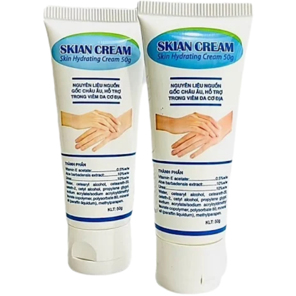 Skian Cream được chiết xuất từ các thành phần tự nhiên như lô hội (Aloe Barbadensis Extract) và Vitamin E, mang đến khả năng dưỡng ẩm sâu, làm dịu và phục hồi da hiệu quả. Sản phẩm giúp cải thiện tình trạng khô ráp, nứt nẻ ở tay và gót chân, đồng thời hỗ trợ làm mờ sạm da, thâm nám và bảo vệ da trước tác hại của tia UV.