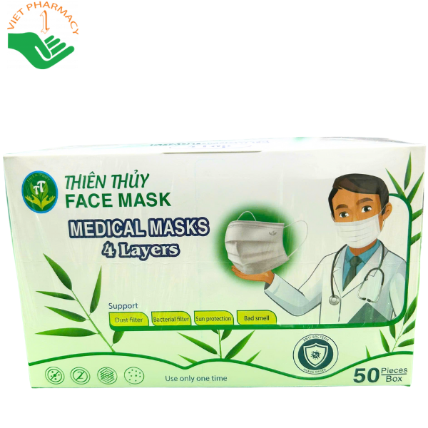 - Khẩu trang y tế Thiên Thủy 4 lớp hỗ trợ ngăn ngừa: Bụi, vi khuẩn và các bệnh lây qua đường hô hấp.