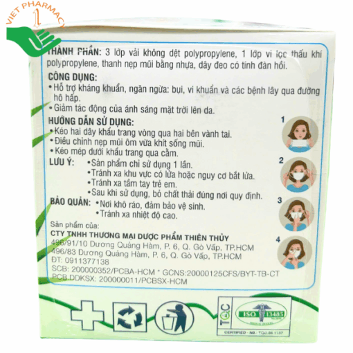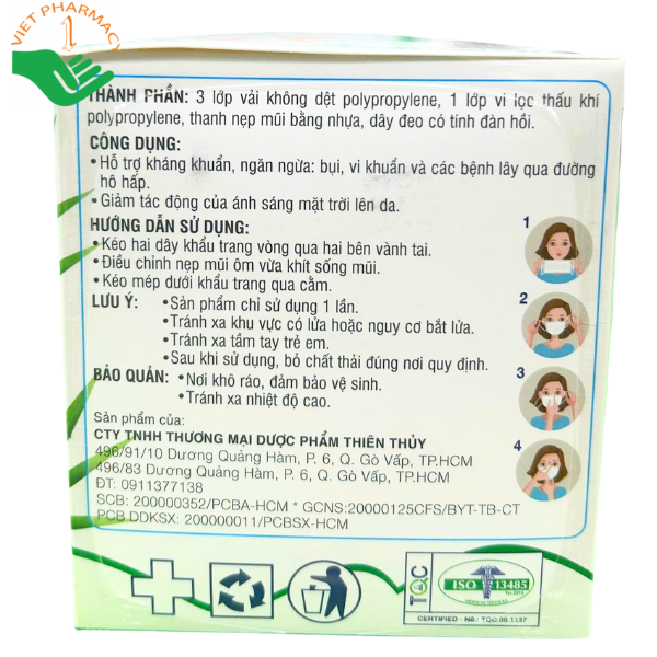 Không chỉ chú trọng khả năng bảo vệ, khẩu trang Thiên Thủy còn mang lại cảm giác dễ chịu khi đeo nhờ chất liệu mềm mại, thân thiện với làn da. Dây đeo chắc chắn, đàn hồi tốt giúp khẩu trang ôm sát khuôn mặt mà không gây đau tai, hạn chế xê dịch khi vận động. Sản phẩm là lựa chọn phù hợp cho những ai mong muốn bảo vệ sức khỏe hô hấp một cách chủ động, tiện lợi và an tâm mỗi ngày.