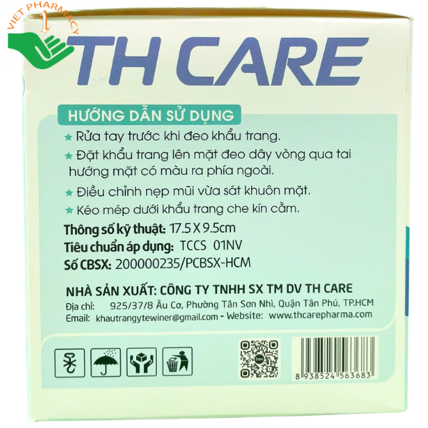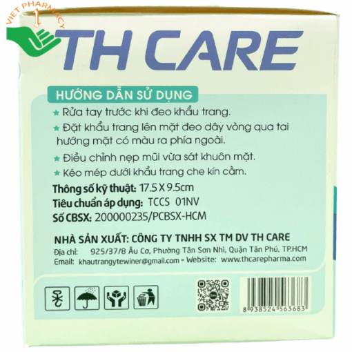 - Đặt khẩu trang lên mặt đeo dây vòng qua tai hướng mặt có màu ra phía ngoài.