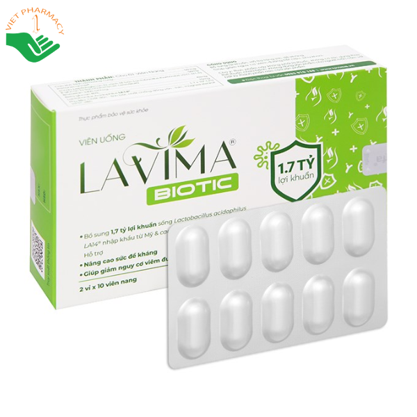 Lavima Biotic là men vi sinh chuyên biệt hỗ trợ chăm sóc và bảo vệ sức khỏe vùng kín nữ giới từ bên trong. Sản phẩm cung cấp 1,7 tỷ lợi khuẩn Lactobacillus acidophilus LA14 ứng dụng công nghệ Probiocap giúp lợi khuẩn sống sót qua môi trường acid dạ dày, từ đó cân bằng hệ vi sinh và độ pH âm đạo. Sự kết hợp của trinh nữ hoàng cung, Immunecanmix và Bromelain giúp tăng cường miễn dịch, giảm viêm, hỗ trợ ngăn ngừa vi khuẩn và nấm gây hại. Lavima Biotic giúp cải thiện các tình trạng thường gặp như khí hư nhiều, mùi hôi, ngứa rát, viêm nấm, viêm phụ khoa tái phát, đồng thời duy trì vùng kín khô thoáng, sạch sẽ và khỏe mạnh khi sử dụng đều đặn.