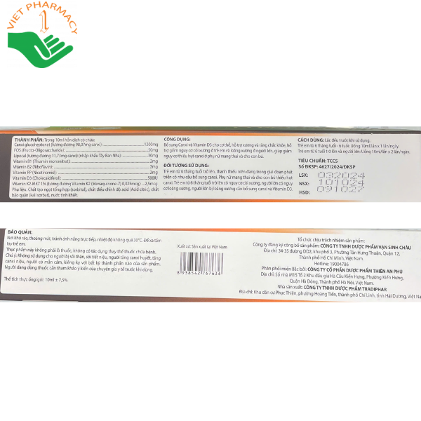 - Canxi glucoheptonat (tương đương 98,01mg canxi)…………………….1200mg