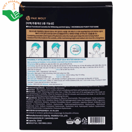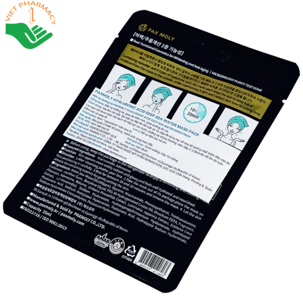 Mô tả mặt nạ PAX MOLY Hyaluronic Acid Deep Sea Water Mask Pack cấp ẩm nước biển sâu và làm dịu kích ứng