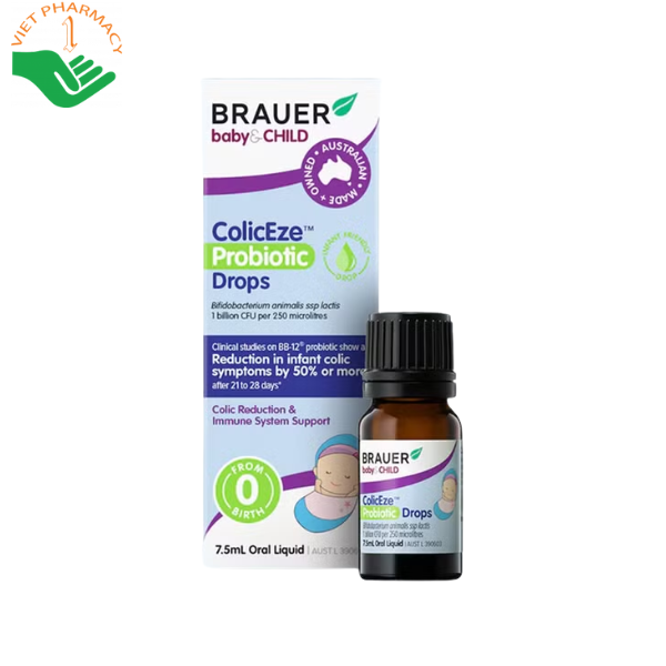Mô tả men vi sinh dạng lỏng BRAUER Baby & Child ColicEze Probiotic Drops giúp giảm đau bụng cho trẻ