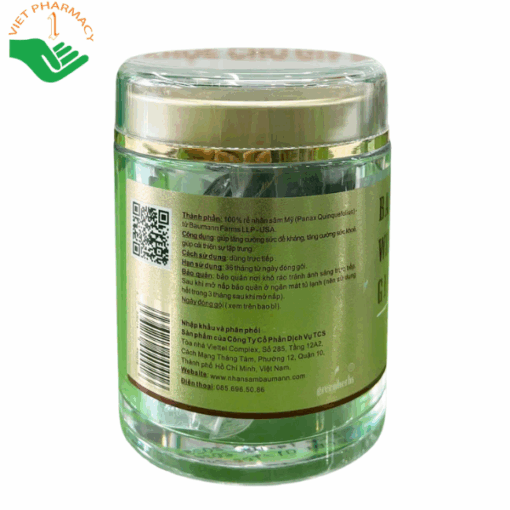 Sản phẩm Nhân Sâm Mỹ Baumann Wisconsin 50g giúp tăng cường sức đề kháng, giảm mệt mỏi, cải thiện trí nhớ và hỗ trợ phục hồi thể lực sau khi ốm. Đặc biệt, nhân sâm còn giúp cân bằng năng lượng, nâng cao khả năng tập trung và cải thiện chất lượng giấc ngủ. Với thiết kế hũ nhựa trong sang trọng, tiện bảo quản và mang đi, đây là món quà ý nghĩa dành cho bản thân, gia đình hoặc người thân trong những dịp đặc biệt. Sản phẩm do Bluebonnet Farms LLP (USA) sản xuất và được nhập khẩu, phân phối chính hãng bởi Công ty Cổ phần Dịch vụ Y tế TCS, đảm bảo an toàn và uy tín tuyệt đối.
