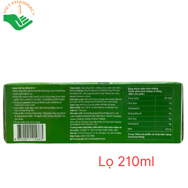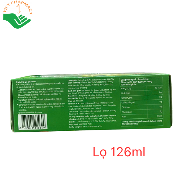 Nước Cốt Gà BRAND’S® là thức uống dinh dưỡng được chiết xuất từ thịt gà tươi chọn lọc, sản xuất theo quy trình hiện đại đạt chuẩn quốc tế GHPs, HACCP, ISO 9001, ISO22000 và FSSC22000. Với công nghệ nấu chậm ở nhiệt độ cao, sản phẩm giữ trọn vẹn nguồn dưỡng chất quý giá từ thịt gà, đặc biệt là Carnosine – dipeptide tự nhiên giúp tăng cường sức khỏe, hỗ trợ cơ thể chống mệt mỏi và nâng cao sức đề kháng. Nước cốt gà BRAND’S® không chứa cholesterol, chất béo, chất bảo quản hay muối, mang lại sự an tâm khi sử dụng hằng ngày.