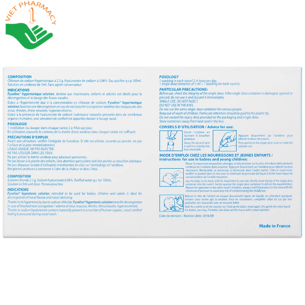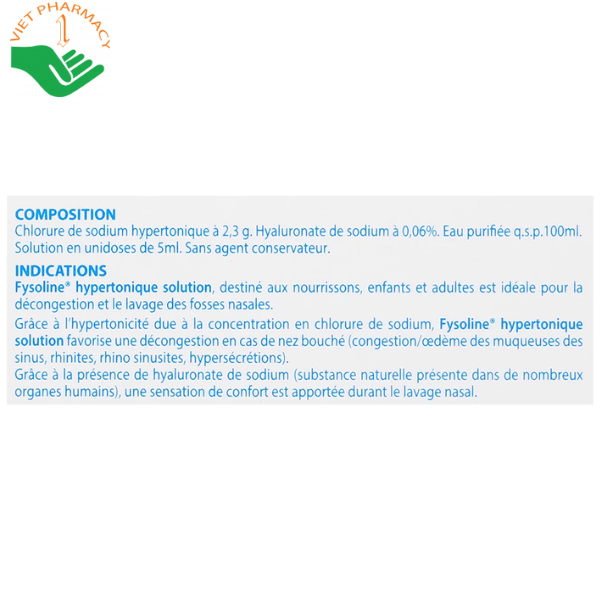 Được sản xuất theo tiêu chuẩn dược phẩm của Pháp, Fysoline Hypertonic solution không chứa chất bảo quản, hương liệu hay phụ gia độc hại, an toàn cho cả trẻ nhỏ và người lớn. Dạng ống nhỏ tiện lợi 5ml giúp dễ dàng sử dụng, đảm bảo vệ sinh và phù hợp mang theo khi di chuyển. Dùng thường xuyên sẽ giúp làm ẩm niêm mạc, ngăn ngừa khô rát, viêm mũi và tăng khả năng bảo vệ đường hô hấp trước những tác nhân từ môi trường. Đây là lựa chọn lý tưởng cho mọi gia đình trong việc chăm sóc và bảo vệ mũi họng hằng ngày.