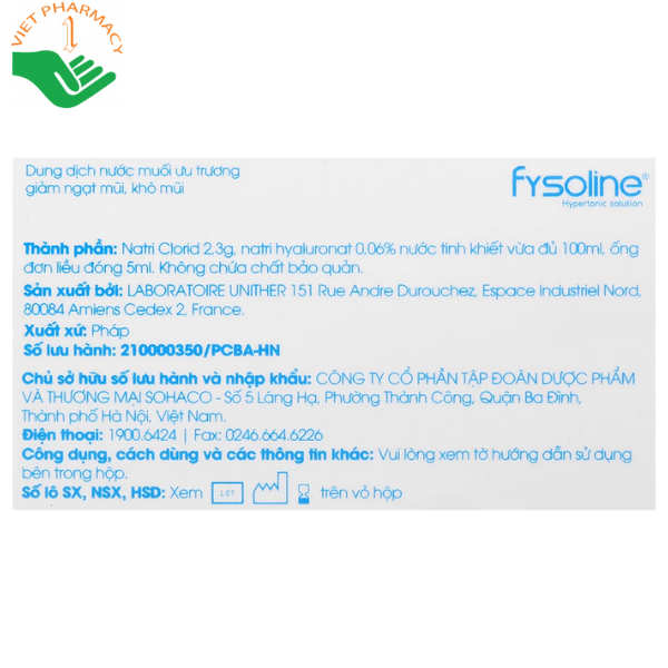 Mô tả nước muối sinh lý Fysoline Hypertonic solution giảm ngạt mũi, khô mũi