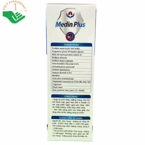 Mô tả nước súc miệng Medin Plus NaNo Bạc giảm ngừa sâu răng viêm lợi nhiệt miệng