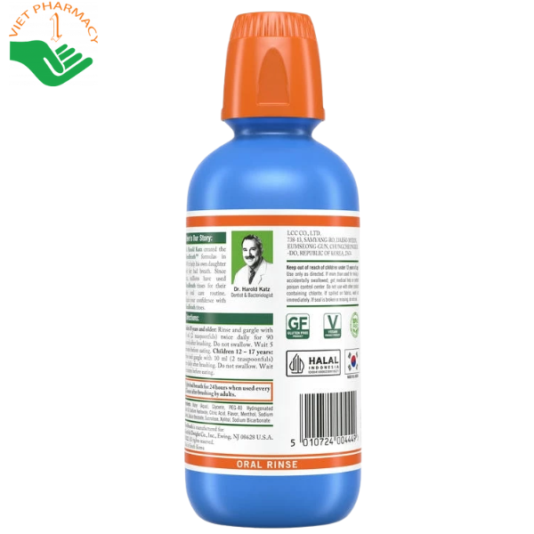 - Cách dùng: Súc kỹ khoang miệng trong 90 giây, đảm bảo dòng dung dịch tiếp xúc với lưỡi, họng, kẽ răng