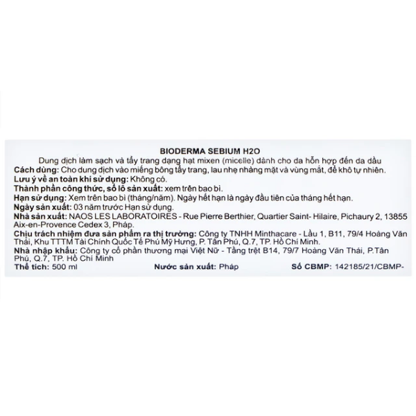 - Sản xuất/Chủ sở hữu: NAOS Group / Bioderma Laboratories, Pháp. Phân phối tại Việt Nam bởi Công ty TNHH Minthacare.
