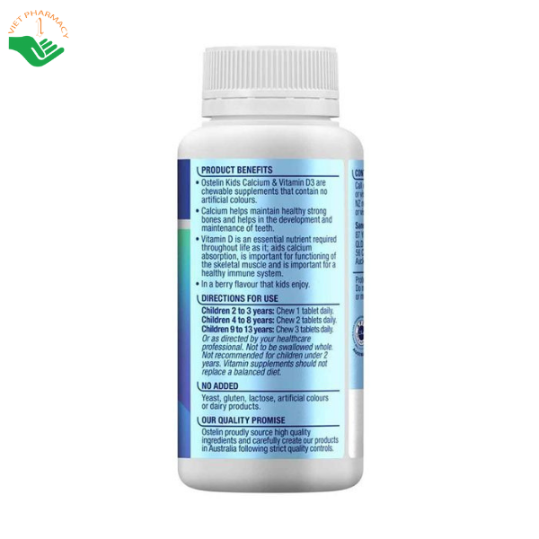 Mô tả sản phẩm Ostelin Kids Vitamin D & Calcium viên bổ sung Canxi và Vitamin D cho bé (Chai 90 viên)