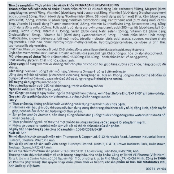 Thành phần của Viên uống Pregnacare Breast Feeding