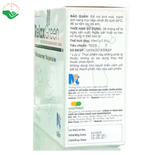 - Đơn vị sản xuất: Chi nhánh Hà Nam – Công ty TNHH Sản xuất Dược phẩm Công nghệ cao Nanofrance. Địa chỉ: KCN Đồng Văn IV, xã Đại Cương, huyện Kim Bảng, tỉnh Hà Nam