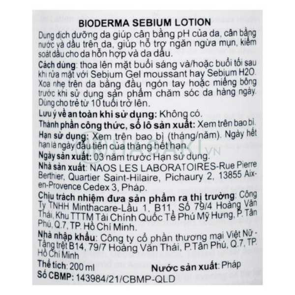- Sản xuất/Chủ sở hữu: Laboratoires NAOS – BIODERMA, Pháp