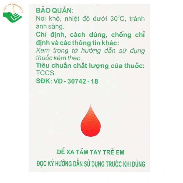 - Bảo quản: Nơi khô, nhiệt độ dưới 30°C, tránh ánh sáng.