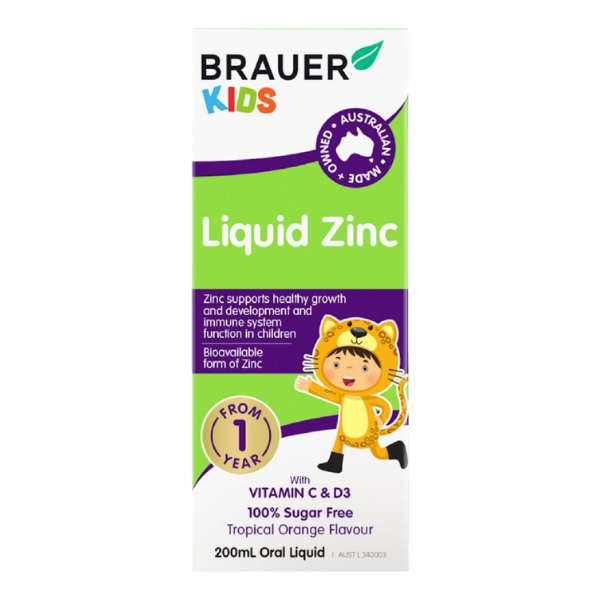 Brauer Kids Liquid Zinc là sản phẩm bổ sung vi chất dạng dung dịch dành cho trẻ em, được thiết kế nhằm hỗ trợ tăng cường sức đề kháng và giúp cơ thể trẻ duy trì trạng thái khỏe mạnh trong giai đoạn phát triển. Trong quá trình lớn lên, trẻ cần được cung cấp đầy đủ các vitamin và khoáng chất cần thiết để hỗ trợ hệ miễn dịch, giúp cơ thể chống lại các tác nhân gây hại từ môi trường và duy trì sức khỏe tổng thể. Tuy nhiên, trong nhiều trường hợp chế độ ăn uống hằng ngày có thể chưa cung cấp đủ các dưỡng chất cần thiết, vì vậy việc bổ sung thêm vi chất có thể giúp hỗ trợ cơ thể trẻ tốt hơn.