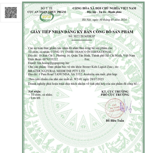 - Sản xuất/Chủ sở hữu: Brauer Natural Medicine Pty Ltd
