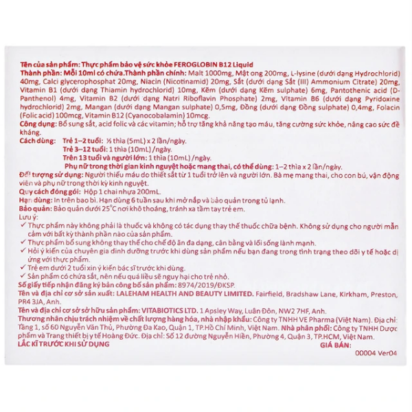 Câu hỏi thường gặp về Vitabiotics Feroglobin B12 LIQUID