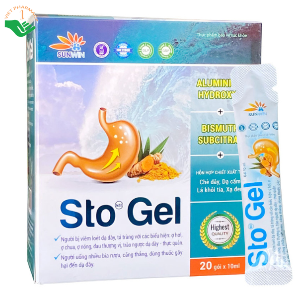 Sto Gel là thực phẩm bảo vệ sức khỏe được bào chế dưới dạng dung dịch uống, kết hợp thảo dược truyền thống cùng các hoạt chất hỗ trợ trung hòa acid, giúp bảo vệ niêm mạc dạ dày và hỗ trợ làm giảm các triệu chứng viêm loét dạ dày – tá tràng. Sản phẩm phù hợp cho người trưởng thành và trẻ em trên 7 tuổi có vấn đề về dạ dày, hỗ trợ cải thiện tình trạng khó chịu khi sử dụng đúng cách.