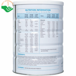 WPC (Whey protein cô đặc), Peptide protein đậu nành, Bột sữa gầy, Dầu dừa, DHA, Dầu hạt hắc mai biển, FOS, Inulin, Nucleotides, L-arginine, Vitamin (Natri L- Ascorbate, dl-a-Tocopherol Acetate, Niacinamide, Canxi. D-Pantothenate, Cyanocobalamin, D-Biotin, Folic Acid, Retinol Palmitate, Thiamine Hydrochloride, Pyridoxine Hydrochloride, Riboflavin, Phytonadione, Cholecalciferol, B-Carotene, Khoáng chất (Kali Chloride, Tricalci phosphat. Canxi Cacbonat, Magie Chloride, Natri Chloride, Kali Citrate, Sắt (II) Sulphate, Mangan Sulphate, Kẽm Sunphat, Đồng Sulphate, Natri Selenite, Kali iodide, Chromium Picolinate, Molybdenum (dưới dang molybdenum amino acid chelate (bột gạo), bột hương cam tự nhiên.