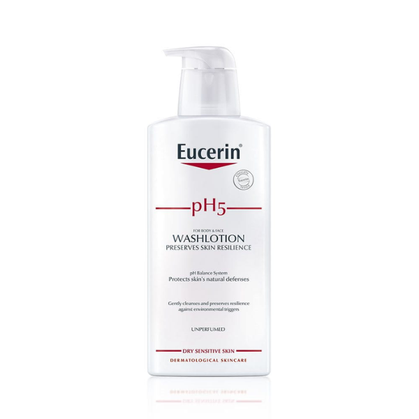 Sữa tắm Eucerin pH5 Washlotion có dạng không bọt, pH cho da trung tính, thích hợp cho da dễ dị ứng, nâng cao khả năng tự bảo vệ của làn da, cải thiện làn da khô, dễ bị tổn thương chỉ sau một tuần sử dụng.